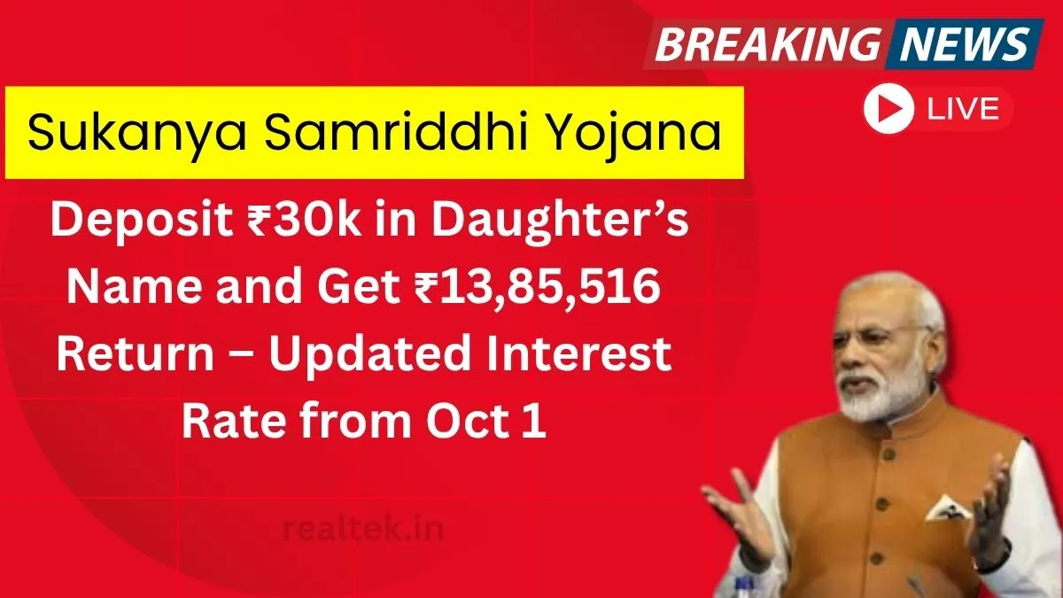Sukanya Samriddhi Yojana: Deposit ₹30k in Daughter’s Name and Get ₹13,85,516 Return – Updated Interest Rate from Oct 1